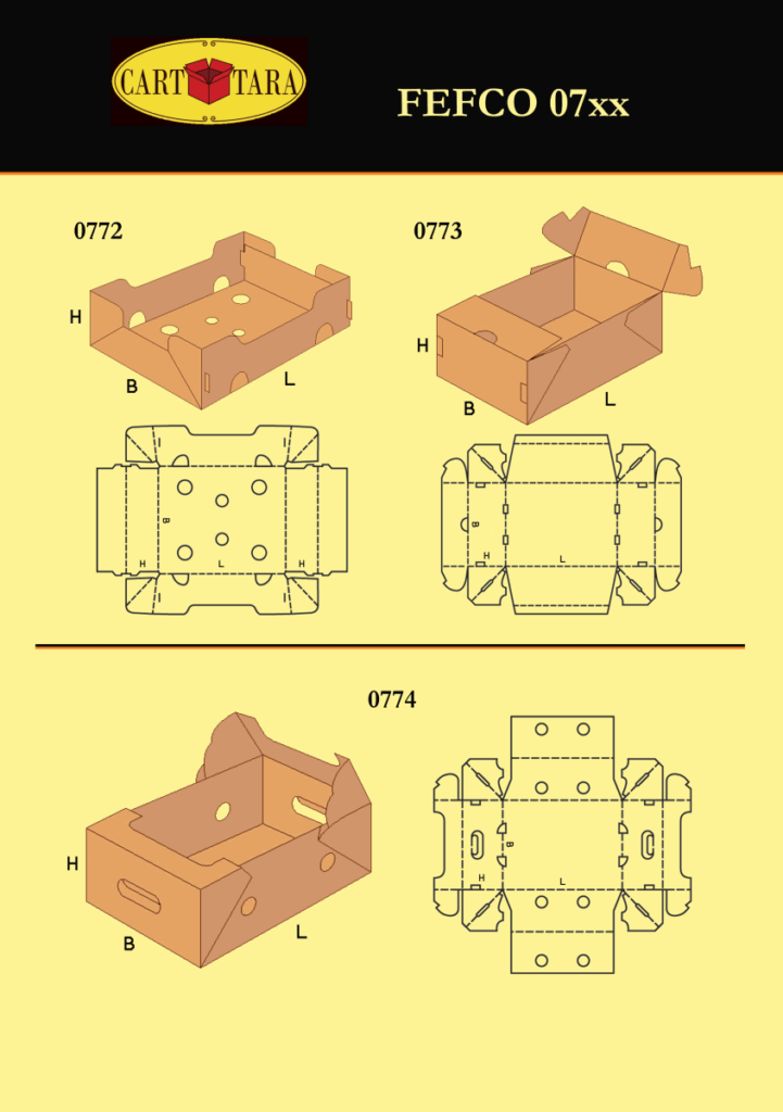 Jūsų patogumui pateikiame konkrečius FEFCO 0772 0773 0774 kodais žymimų dėžių tipų aprašymus ir vizualinę schemą.